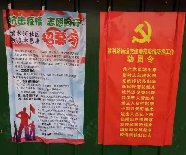 发动群众,党建先行。成立临时党支部、设立党员先锋岗,充分发挥社区战斗堡垒作用、党员模范带头作用,让党旗飘扬在抗疫第一线。发布《动员令》、《招募令》,广泛发动群众,统筹安排“三无”小区值班工作,落实联防联控措施,构筑群防群治防线。