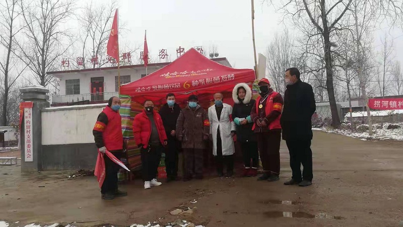 老共产党员、国家退休职工欧阳才发,在口罩紧张的情况下,通过亲戚购回两千个口罩献给卡点。已退休的共产党员、拐河镇一小支部书记,现任拐河镇志愿服务站主抓宣传的副站长刘合伟同志和杨云彬去杓留村卡点慰问。
