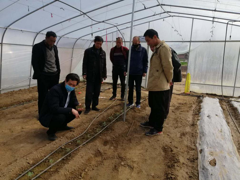 随后,赵新彬一行对所有种植大棚都进行了巡检,特别是对葡萄套种西瓜的大棚,进行了认真的检查,对发现的西瓜苗没有盖地膜和小拱膜、温度达不到根系生长的适温,导致苗弱长势不旺还有株距过小等问题,赵新彬一一给出了提棚温促地温,等苗稳定后除弱留强等措施。