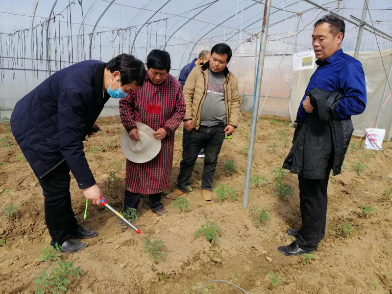 一天的服务快结束了,赵新彬一行又来到谢贵东种植的番茄大棚。为了推动绿色优质番茄生产,他又为谢贵东提供了熊蜂一箱,电动振荡番茄授粉器一台,对该仪器的具体使用方法做了详细讲解,并手把手教会了他们正确使用电动振动棒授粉方法。