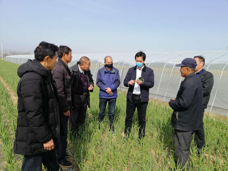 应大蒜种植户的邀请,赵新彬一行又来到大蒜田内,对大蒜种植情况进行巡诊,虽然今年的苗情好于去年,没有发现病虫危害情况,但管理上还是存在问题,赵新彬针对发现的问题提出了重抓两水两肥,杀灭蒜蛆,选准品种谨防过量的建议。