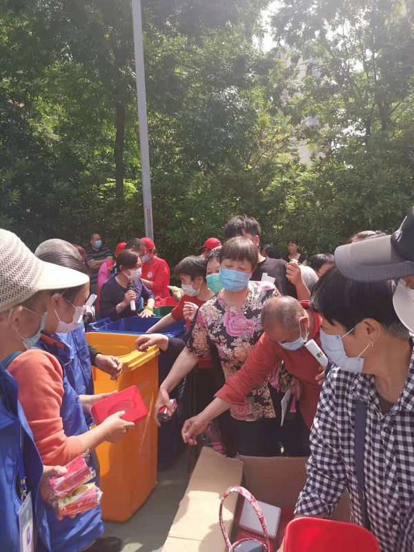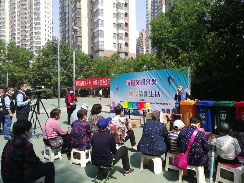 2020年5月6日上午在中原区阳光花苑社区由莲湖街道办事处,杏湾物业管理服务有限公司,河南衣衣不舍环保科技有限公司共同举办了这次主题为《春风送暖五月天,垃圾分类换蓝天》的宣传活动。