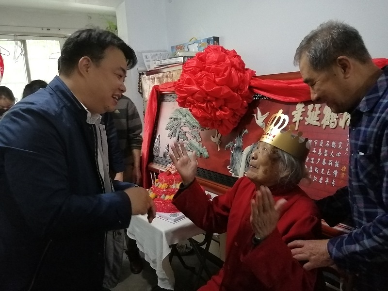 “能给百岁老人过生日,这是我以前没有遇到过的快乐事,我觉得能参加这样的活动,沾了老人的喜气,特别开心和幸福,让我知道了乐观豁达才能长寿、简单生活才是幸福。希望我们社区以后能有越来越多的百岁老人,老年人的生活也是越来越好。”为老人庆祝寿辰的社区志愿者吉玉琴感触颇深,她和在场的工作人员一起为老人送上鲜花、蛋糕,并点上生日蜡烛。“祝你生日快乐……”在欢快的生日祝福歌声中,当老人双手合十许下心愿,与大家一起吹灭蜡烛时,现场响起了热烈的掌声,欢乐的气氛弥漫了整个屋子,每个人的脸上都荡漾着笑意。