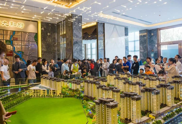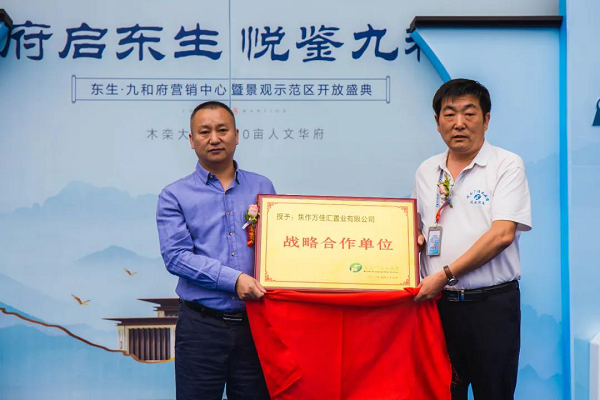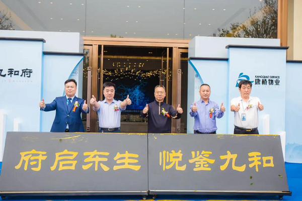 随后,在来宾的见证下,诸位领导共同为东生·九和府营销中心暨景观示范区鎏金揭幕。