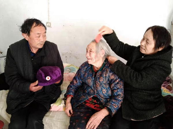 母亲已是97岁高龄的老人,年迈多病,2015年5月,因走路时不慎摔倒,造成小腿骨骨折,她带着母亲先后到县医院,段庄骨科医院进行治疗。住院期间,她和丈夫一直陪伴在身边,轮流侍候,整整治疗两个月,方才出院,回来后他们二人又倍加关心,扶着她走路,慢慢锻炼,直到康复能自行走路。