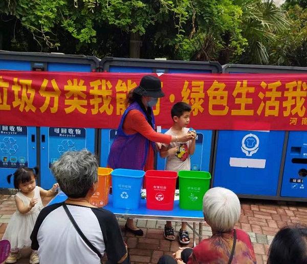为进一步加强垃圾分类知识宣传,增强居民的分类意识,养成垃圾分类的良好习惯,2021年6月15日,在二七区城管局及淮河路办事处的指导下,河南衣衣不舍环保科技有限公司在兴达锦绣园小区内开展垃圾分类宣传活动。