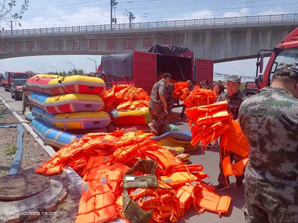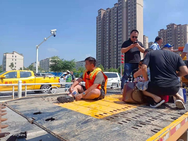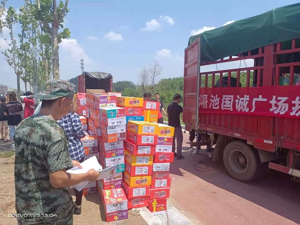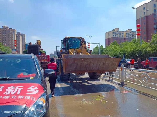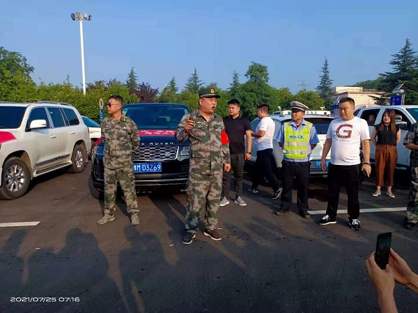 早上7.30车队有序进入高速,中午12点半,车队到达新乡市卫辉市,在与渑池县韶鹰救援队对接后,所有人员顾不上休息,就积极投身物资装卸中,大家心里只有一个想法,早点把物资送到灾区人民手中。