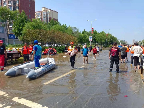 据了解,渑池县韶鹰救援队于7月 23号,到达新乡市卫辉市,截至记者发稿,韶鹰救援队已在卫辉县连续奋战4天,累计救援灾民100余人。