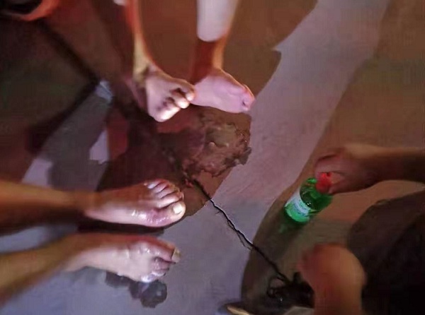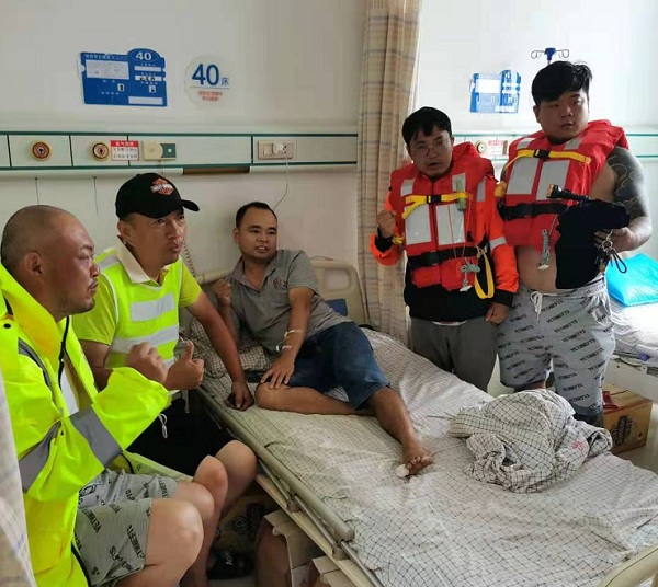 一位队员因为体力透支休克,2名志愿者受伤,1名队员的脚被电伤,1名队员脚踩到锋利物脚趾割伤,其余参与一线的队员的脚在水中泡了六天后全都起泡 泡烂。