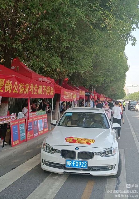 6月7日早上七点,高考第一天,方城一高及三职高校区大门口,爱尚公益志愿者团队员精神抖擞,随时准备为高考生服务。 今年是爱尚公益启动“爱心助考”公益活动的第七个年头,“爱心助考”公益活动也是方城高考期间流动的风景!