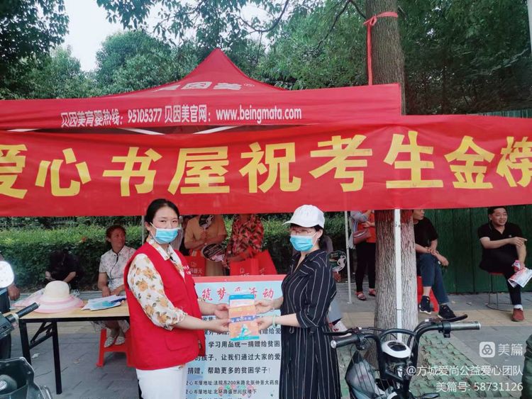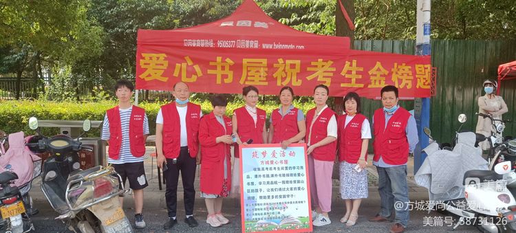 方城爱心书屋同时开展了《筑梦爱行动》,在每个高考考场开展募捐高考文具的及课外书捐赠献爱心活动
