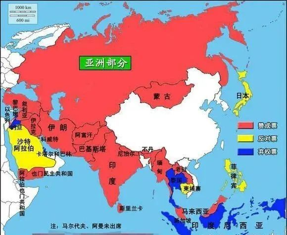 亚洲共30国投票:赞成票19票,反对票4票,弃权票7票。