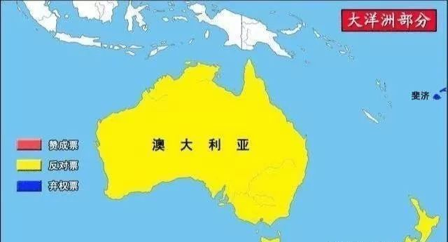 大洋洲共3国投票:赞成票0票,反对票2票,弃权票1票。