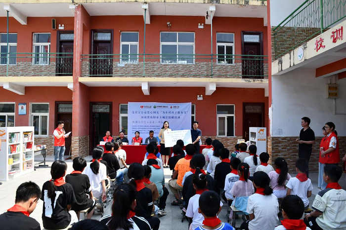 随后,方城县工商联代表中华思源工程基金会、新浪扬帆公益基金发表讲话。她阐述了此次捐赠活动是由支付宝公益爱心网友支持的,对于推动乡村教育发展,以及丰富孩子们精神世界的重要意义,我们共同希望这份爱心能激发同学们对知识的渴望与追求,努力拼搏进取。