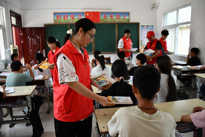 此次活动中,最令人暖心的环节当属图书发放。方城县义工联合会的志愿者们穿梭在校园中,将一本本崭新的图书递到同学们手中。他们脸上洋溢着温暖的笑容,耐心地与孩子们交流,鼓励大家多读书、读好书。志愿者们的身影,成为了校园里一道亮丽的风景线。孩子们接过图书,爱不释手,眼中闪烁着喜悦的光芒。